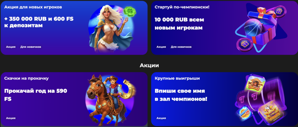 Да, казино предлагает широкий выбор бонусов и акций: приветственный пакет для новых игроков, бесплатные вращения (фриспины), кэшбэк, участие в турнирах с денежными призами, а также персональные промокоды по программе лояльности. Акции обновляются регулярно.