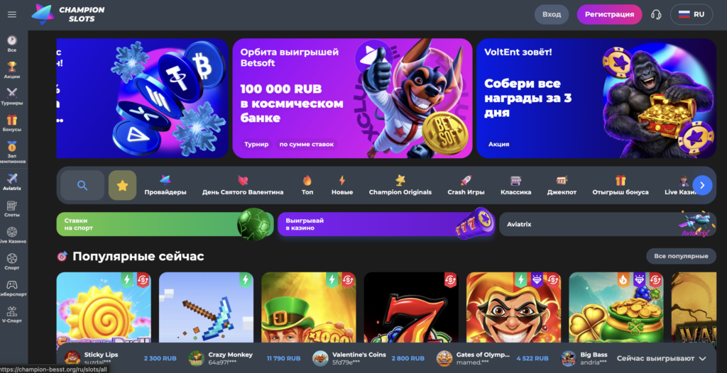 Что предлагает казино Champion Slots: вселенная азартных развлечений