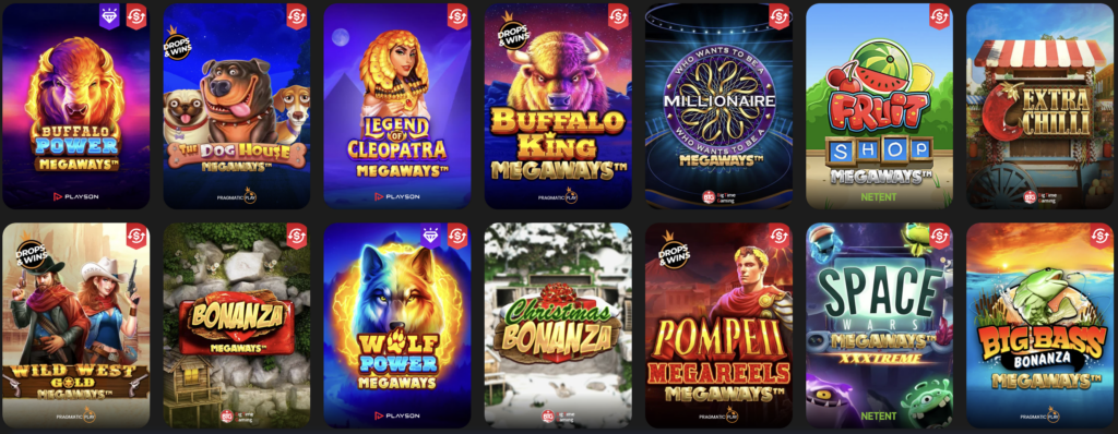 Центральное место в каталоге занимают видеослоты, которых здесь насчитывается несколько тысяч. Коллекция включает как ностальгические классические автоматы с тремя барабанами и фруктовой символикой, так и ультрасовременные видео-слоты с кинематографичной 3D-графикой, сложными сюжетными линиями и многоуровневыми бонусными играми.